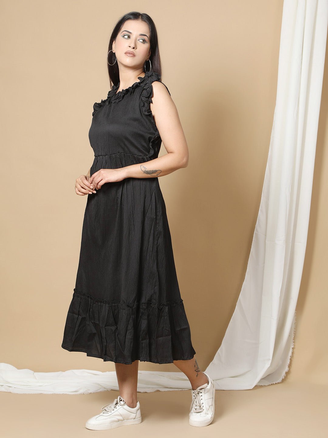 Black Shoulder Straps Tie-Ups Satin Midi Maxi Dress for women RBF9