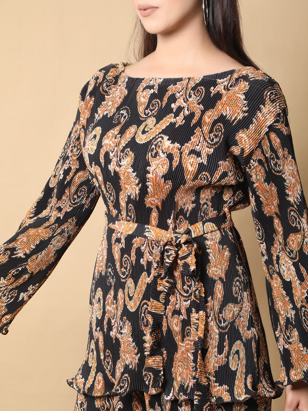 Material composition: Wrinkle Crepe Fit type: Straight / Regular Fit Sleeve type: Full Sleeve Length: Standard Length Neck style: Boat Neck Style: Western Wear Wash Care: Machine Wash Occasion: Casual / Office Wear