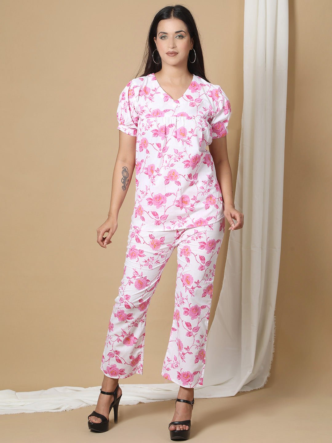 Printed Cotton V Neck Co-ord Set for Women RBF32