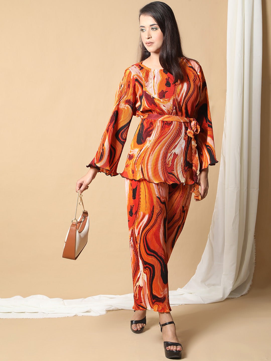 Pleated Abstract Print Co-ord Set For Women RBF24