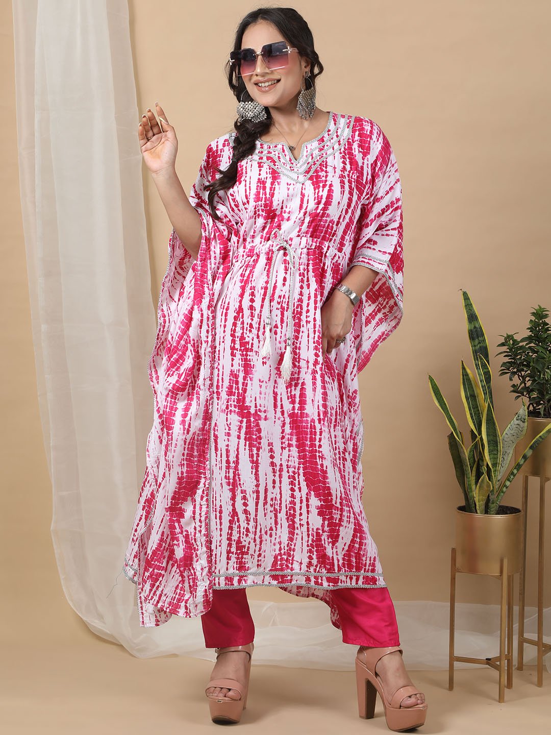 Pink Printed Kaftan For Women RBF59