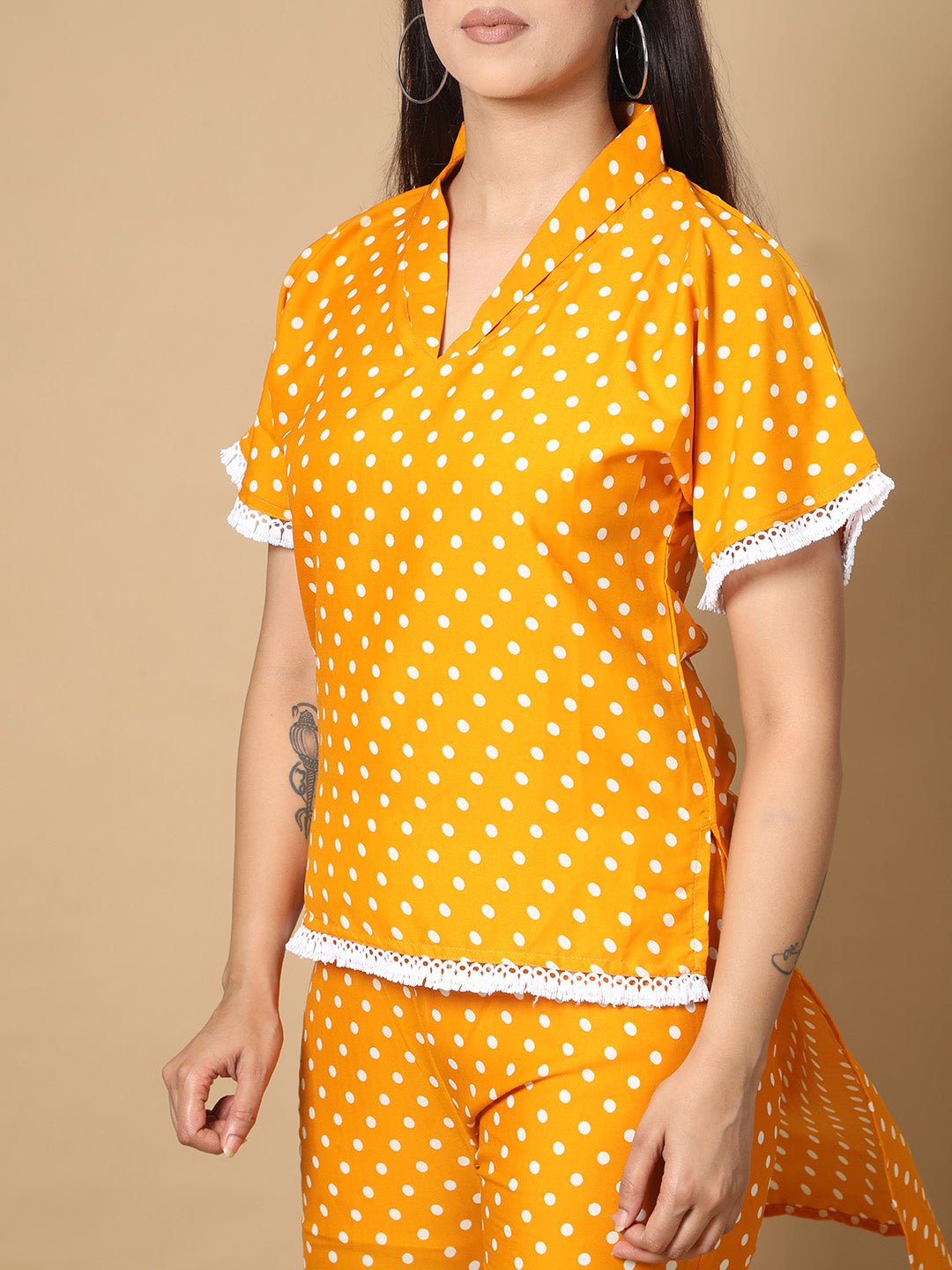 Material composition: Crepe Fit type: Straight / Regular Fit Sleeve type: Half Sleeve Length: Standard Length Neck style: V Neck Style: Western Wear Wash Care: Machine Wash Occasion: Casual / Office Wear
