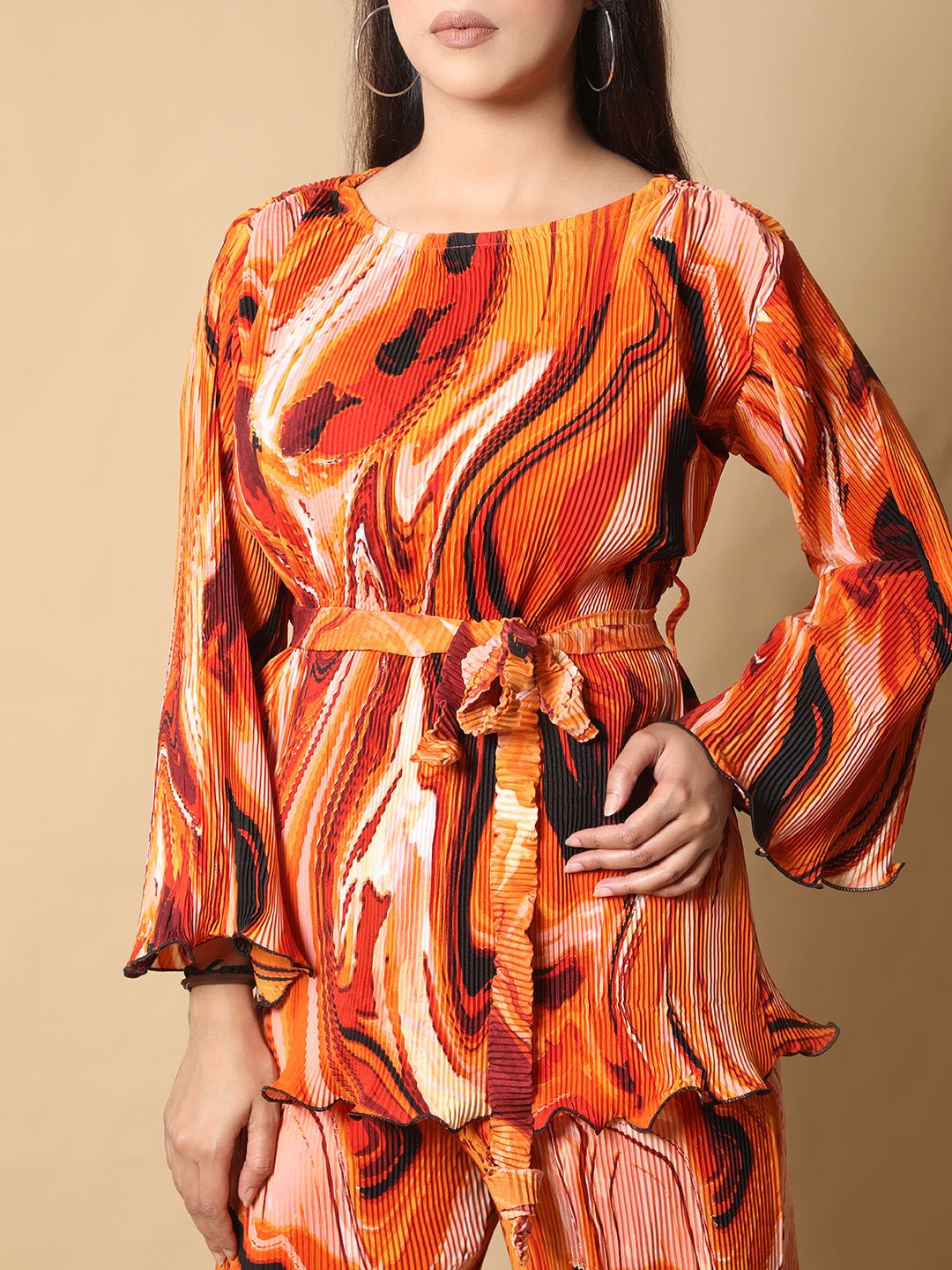 Material composition: Wrinkle Crepe Fit type: Straight / Regular Fit Sleeve type: 3/4 Sleeve Length: Standard Length Neck style: Boat Neck Style: Western Wear Wash Care: Machine Wash Occasion: Casual / Office Wear