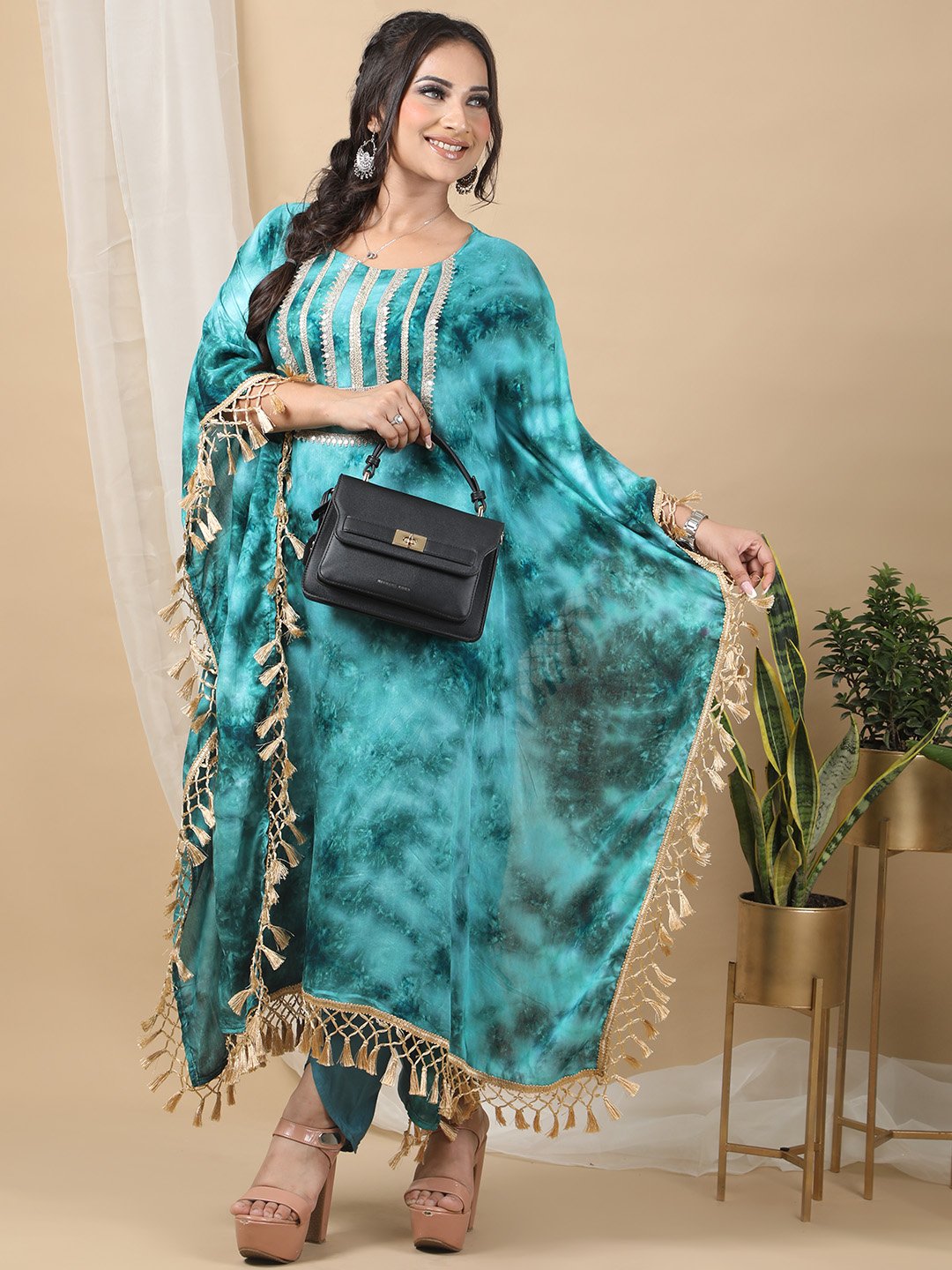 Sea Green Printed Round Neck Kaftan For Women RBF57