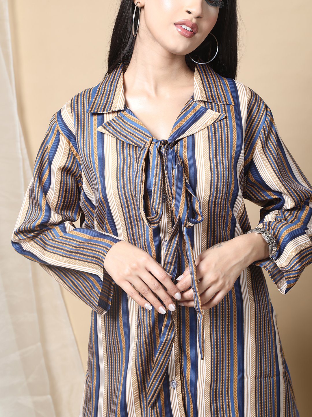 Material composition: Crepe Fit type: Straight / Regular Fit Sleeve type: Full Sleeve Length: Standard Length Neck style: Coat Neck Style: Western Wear Wash Care: Machine Wash Occasion: Casual / Office Wear
