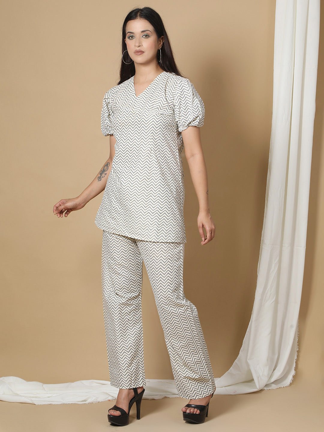 White Printed Co-ord Set for Women RBF32