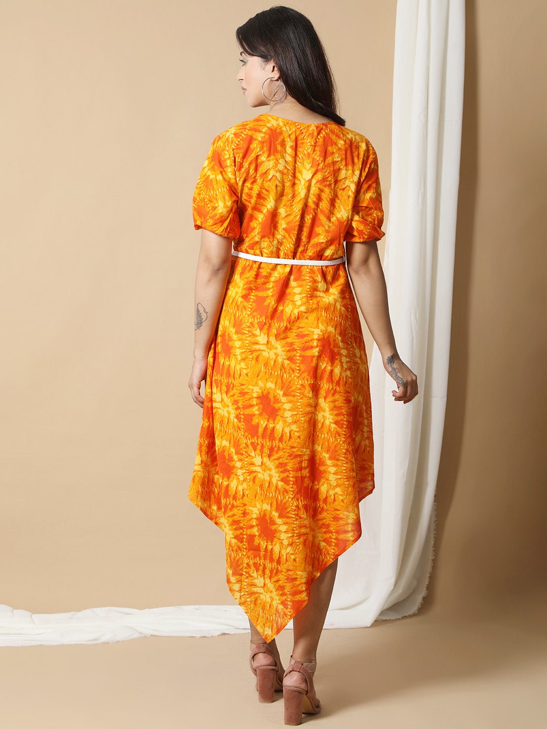 Material composition: Cotton Tie Dye Fit type: Straight / Regular Fit Sleeve type: Half Sleeve Length: Standard Length Neck style: Round Neck Style: Western Wear Wash Care: Machine Wash Occasion: Casual / Office Wear